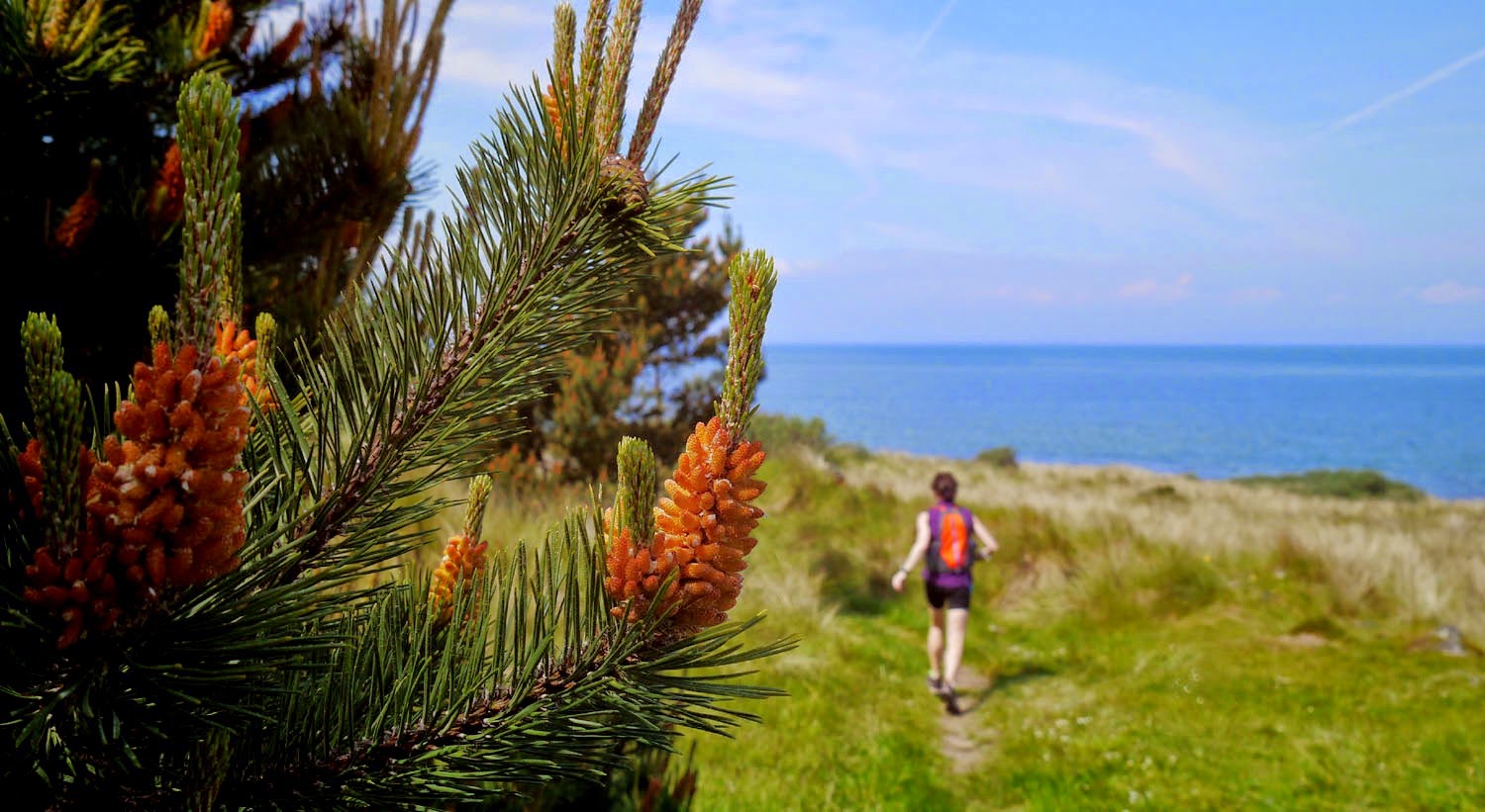 I had thought the warmth might have brought out the dragon- and damselflies but maybe too much of a chilly onshore breeze. To avoid this we headed inland and through the woods, before arriving at the shore on the other side of Gullane. We returned to the van via Gullane beach which was medium busy. Loving the summer sun!