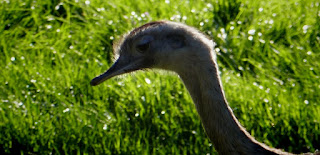Round a couple of corners and I found the going about the worst of the day. Really lumpy tussocky paths with grass leaning over the single track so you couldn't easily judge where you were putting your foot or into what. Also the others ahead (fastards - copyright Mary J) didn't seem to be having any trouble floating along. After an age, and some close ups of the B Rock, we eventually hit the golf course this side of NB. After a regroup to cause minimal golf rage we took what we hoped was the most considerate line across the fairways. It was delightful running, the sun was shining and we were bombing downhill.