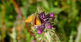Small skipper (above) - I should have paid more attention to them. I really love the small skippers but they were being skittish today and I only got a couple of pics. Kept flying off. Wouldn't have posted this one except look at all the beetles stuffed into that thistlehead!