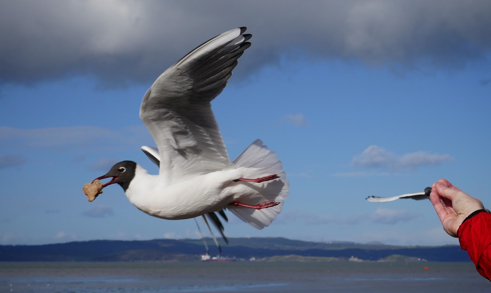 I was so delighted with all the bird action we had had I wasn't going to bother with the gulls at the estuary but Nick went over to the ice cream van for a bottle of water. So while he was there I got out the remaining bread and chucked it gullward. The wind did not lend itself to the usual flying pattern the gulls adopt and they were a bit half-hearted about it today. I got Nick to deliver the bread which freed me up to take photos. The gulls lack of enthusiasm was appreciated by the mallards who gathered on the sand below collecting anything the gulls missed.