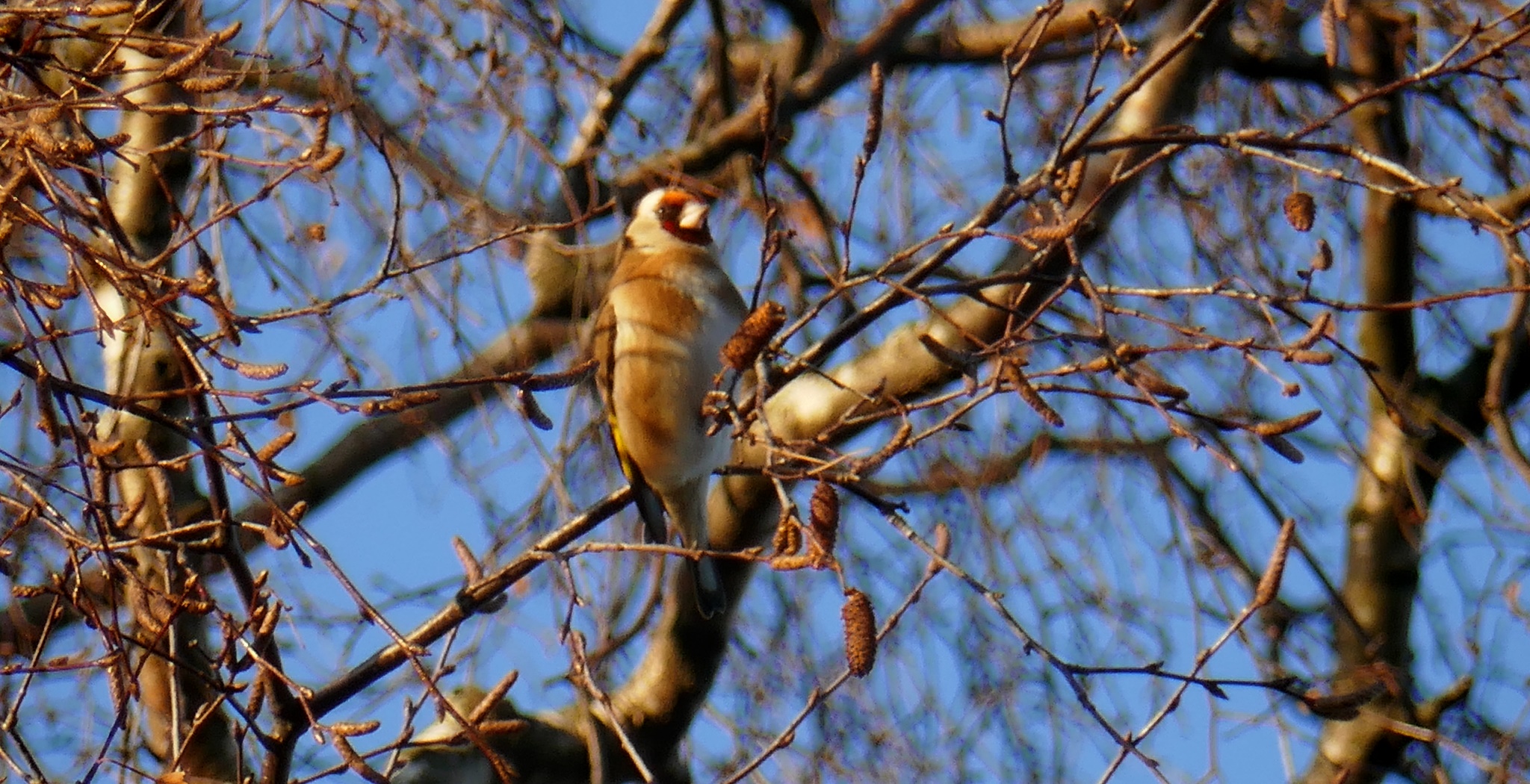 Corstorphine Hill was looking superb in the low sun but alas the birds seemed to have flown off for the day. Maybe need to arrive a bit earlier. I hate the boring drag along Ravelston Dykes but Mary likes it, so we returned that way. I think it is the most direct line home and Mazza gets a bit done-in after the miles get into double figures. Near the Dean Village there was a stand of birches just behind the wall we were running past. We saw a gang of gold finches at the zoom limit of a bad photo. However because we had had no joy at Corstortphine we tarried for slightly too long taking bad pics. The finches were eating the shoots or seeds from the trees. There was also one or 2 small drab looking birds that I had a notion were gold crests. They moved very quickly and only occasionally came low enough to bother taking photos of. The pics revealed they were gold crests (hurray!) but the images were shite (boo!). Maybe if I get that new camera...