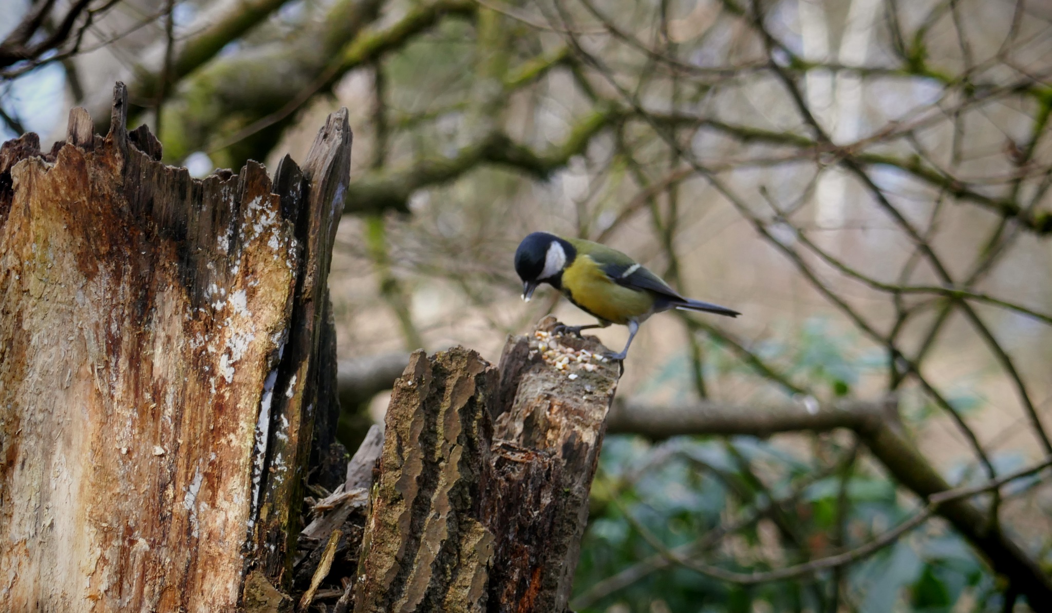 I have been watching some youTube videos on how to get better bird pics and video by Mike Lane FRPS. He is very knowledgeable on how to approach what can seem a near impossible thing. (Charming the birds out the trees.) And almost makes it look easy. It gave me ideas about placing birdfood in spots like on the top of the tree trunk stumps. Which instantly makes for more interesting photos rather than just on the flat bough. It helps disguise the piles of food necessary to attract the birds. Because they won't just show up due to your charisma.