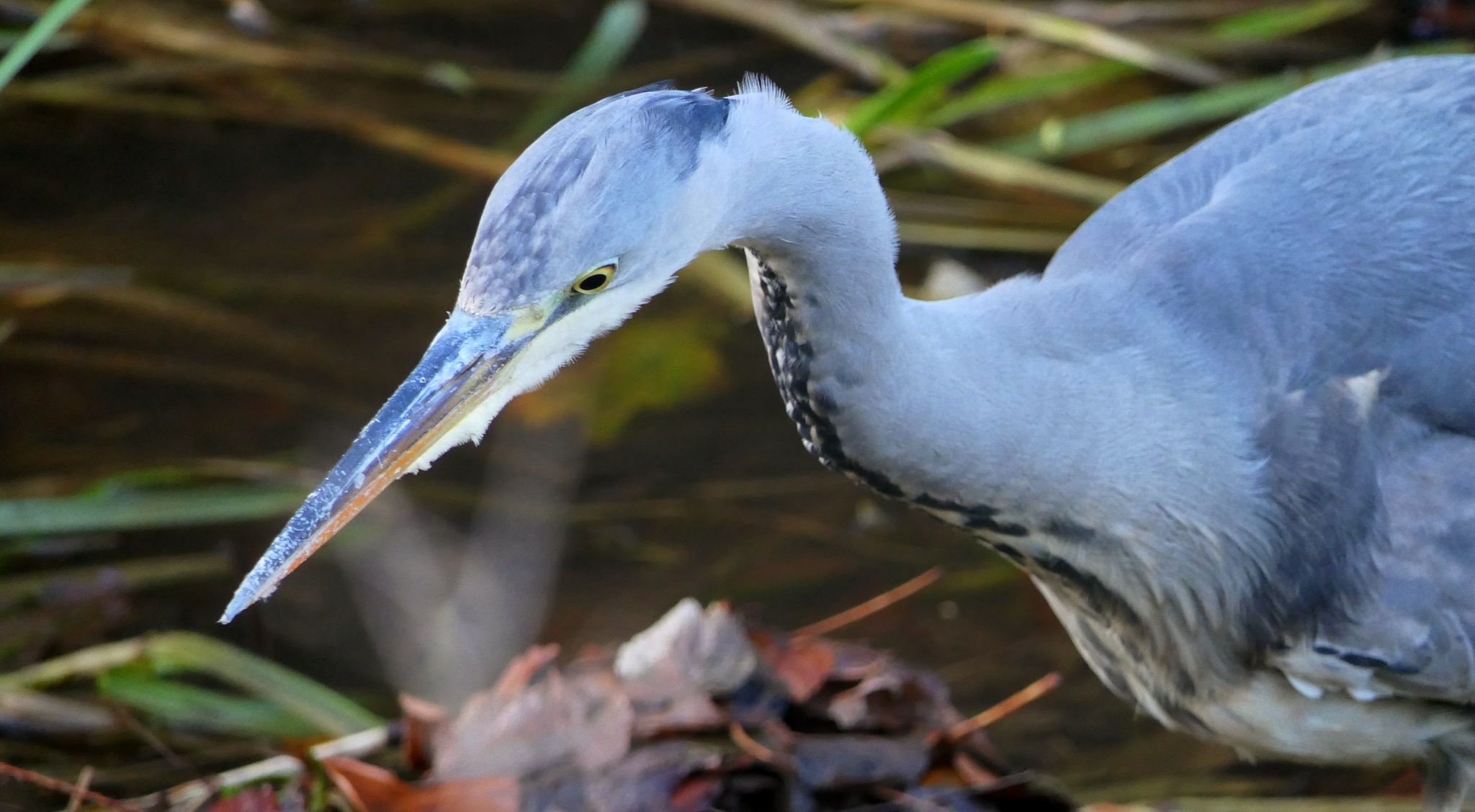 And that would have been that but as I left by the same way (the bridge upstream of St Marks) I caught sight of another heron (or the same one) on the other side of the WoL looking for his dinner. He stalked very slowly and would go into motionless study for minutes at a time if he saw any movements in the riverside grasses. Which makes taking photos much easier, even though the light was already gone. I kept a respectable distance not wishing to disrupt the scene, although I think all the wildlife has grown used to the banging and clatter of the building site next door which has been going on a couple of years now.