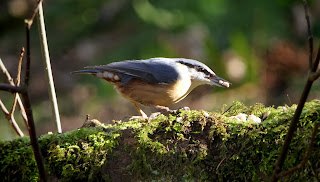 The good news was the jays reappeared. Not immediately, but after a short while they came down out the trees. I had put bread and seeds in a few places and it attracted loads of nuthatches and coal tits. I tried to get shots of the nuthatches, which I slightly neglected last visit in favour of the jays. There were a couple of nuthatches really excited about the piles of sunflower hearts and after eating a few began to collect them to stash elsewhere. Like Autumn squirrels, when there is excess food they hide it in holes in the tree trunks and ends of branches. There seemed to be quite a few nuthatches busy doing this and they were not shy; coming very close to where I was standing. Normally they would keep their distance so I was really thrilled to get close-ups of them in the intervals when the jays were sat in the trees.