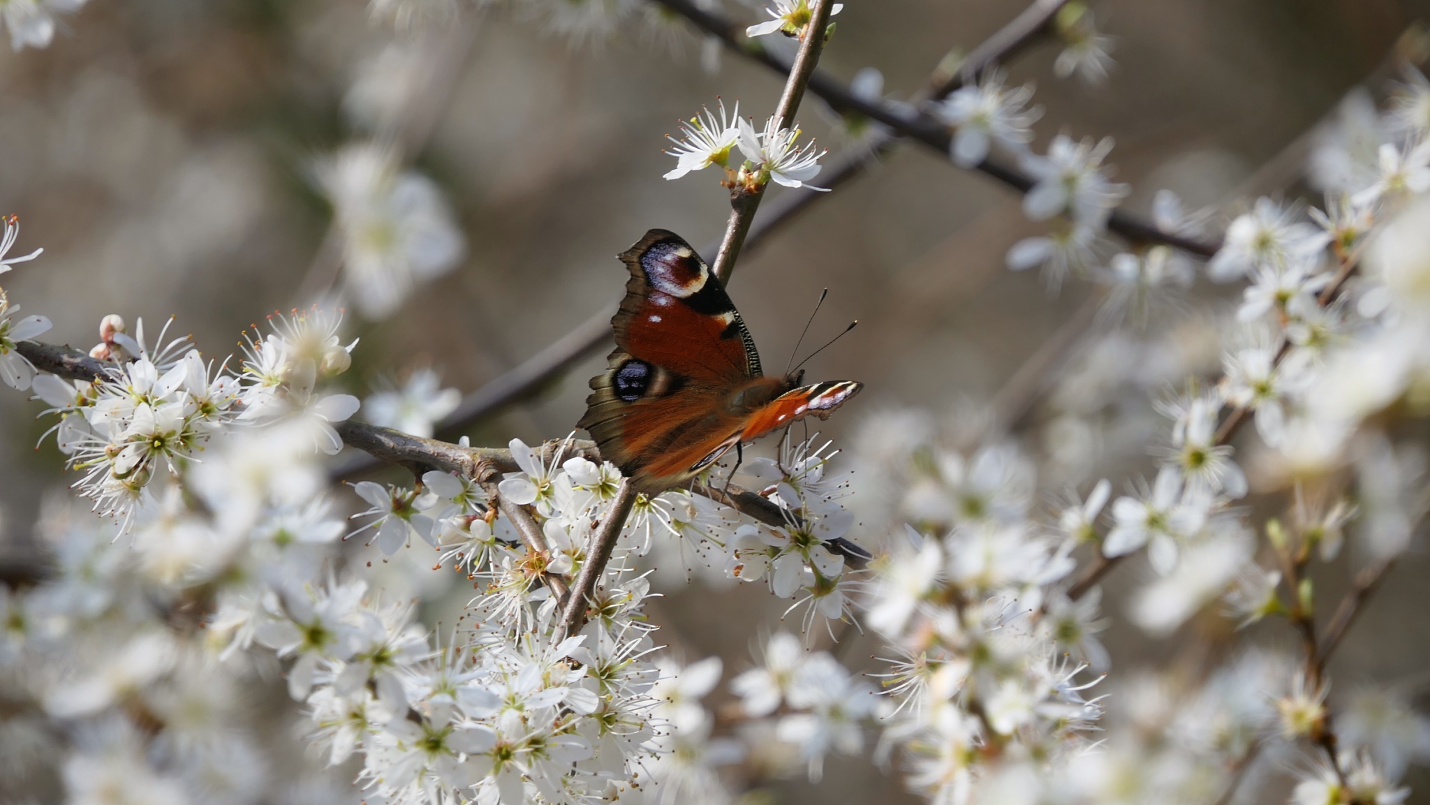 I am trying to remember the order I saw stuff. Initially I think there was not much to see between old NBA corner and new NBA corner. I found the blossoming shrubs and I think maybe a small tort and a few bees. My plan was to head to Dr. Neil's Garden at Duddingston where flowering heather was a pull (and a photogenic background) for butterflies early on last year. I had high hopes so wasn't particularly worried by the lack of butterflies on Unda's blossom. Which she suggested was wild plum. I couldn't really be sure of the difference between plum, cherry, hawthorn or blackthorn blossoms, and I was too lazy to research it all. Yes some are small trees and others, sticks-like canes. And I don't have a smart phone so can't do apps that tell you which is which.