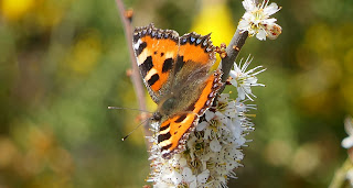 I stopped to have a look at the blossoming bushes near the Commie Pool roundabout. There were a couple of peacock butterflies there so I took some pics and while I was standing there a browny grey shape flitted into the background. First speckled wood of my year! I was very pleased although it neither hung about nor came any closer. A good start to the day, in fact the highlight.