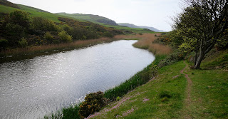 I avoided most of the coastal stuff: sea birds and lighthouse etc. and instead spent most of the time trying not to slip on the steep ground at the South-East end of Mire Loch. There were loads of sea pinks and a few small coppers flitting from one to the next. They were fairly busy so it was not easy and the ground is not flat at any point - so you find yourself lying on the slope, trail shoe grips slowly losing traction as you slide in slow motion while trying to focus on a tiny coppery butterfly bouncing from bloom to bloom. The sun is blow-torching the bald spot on your head and it would seem imprudent to drink the very last of the fluids in your reservoir when there is still an hour of this torture to go.