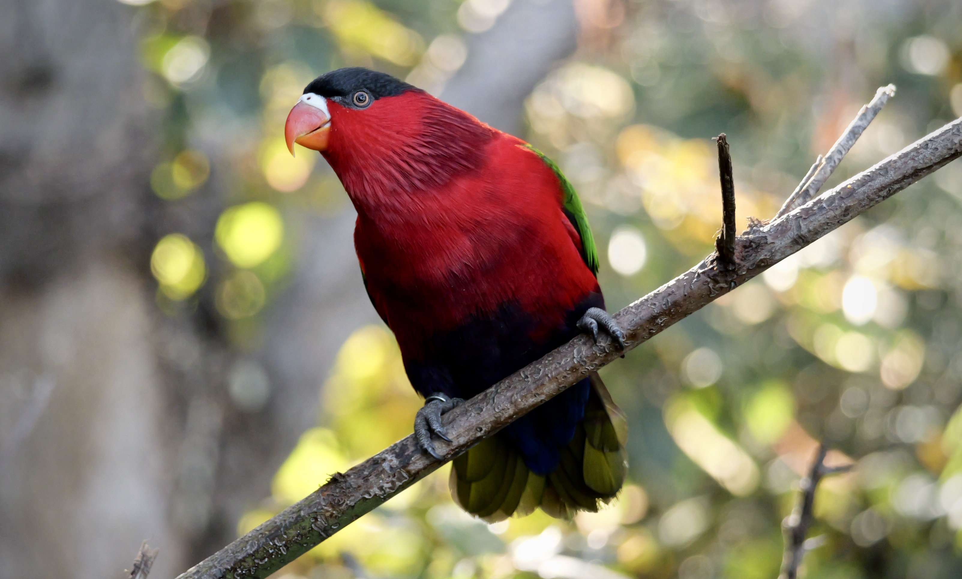 Being in the same enclosure as the birds was the best way to get photos as well as just being close to these crazy creatures without a mesh of wire between. There were a number of smaller wire cages in the place but you didn't get either the proximity nor the clarity of photo as you did in these excellent everyone-together enclosures. The birds were fairly indifferent to human company since they had it all the time but the Horned Parakeet, a real charmer, came over to where we were as if to interact and let us take his photo. I really enjoyed the interactions with these birds. Far more heart- and spirit-warming than the cold stand-offishness of (almost all) butterflies and dragonflies.
