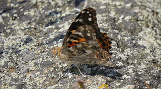 I found a Painted Lady (first of the year) on the top of Crow Hill. It was very flighty - moreso than the crow! - and took off if I got anywhere near. Just a couple of pics then it was goney gone.