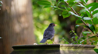 this blackbird is a regular visitor and arrives with great enthusiasm when I put out food