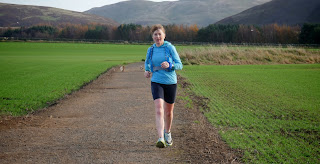 We emerged at those flat fields before Harlaw visitor centre. There were people again and dogwalkers. (I used to run here occasionally with the Harrison Park Sunday group.) We ran down to the main road and turned left. I recognised the road as the one that the hire bus used to drop us at for the start of the Water of Leith Half. A race I used to organise a lifetime ago. It has undergone a couple of changes of organiser since but is still going and might happen tomorrow if memory serves, a long time since I have felt the need to take part.